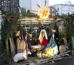 У входа в храм был размещен большой вертеп. Члены клуба вырезали из дерева и расписали скульптуры персонажей рождественской мистерии, а также изготовили для них костюмы, сообщили "Интерфакс-Религия" в "АртЭриа".