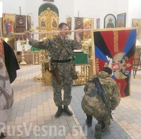 Тем временем 29 июня в Свято-Воскресенском храме Славянска освятили знамя 1-го добровольческого батальона. В церемонии принял участие главнокомандующий армией Донецкой народной республики Игорь Стрелков.