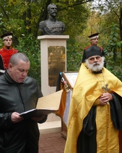 Москва. 6 октября. ИНТЕРФАКС - Освящение и открытие бюста святого страстотерпца, царя Николая II состоялось в воскресенье у храма Сошествия Святого Духа на бывшем Лазаревском кладбище в Москве.
