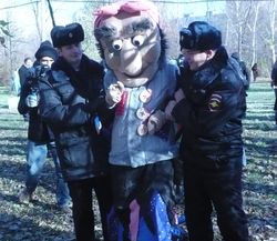 28 октября 2014 года, 10:00Протестовавшую против строительства храмов в Москве Бабу-Ягу сдали конкуренты