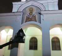 Для этого священнику пришлось подняться на подъемной машине на высоту 10 метров. Затем в крипте храма состоялся концерт.