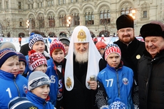 Мероприятие прошло на катке на Красной площади в Москве. Турнир по русскому хоккею на призы патриарха проводится уже в пятый раз, сообщает сайт Московского патриархата.